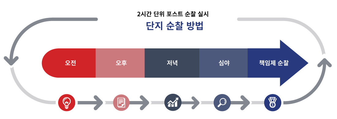 스마트 앱을 활용한 순찰, 근태관리, 주차관리, 보고 등 디지털 경비시스템 운영